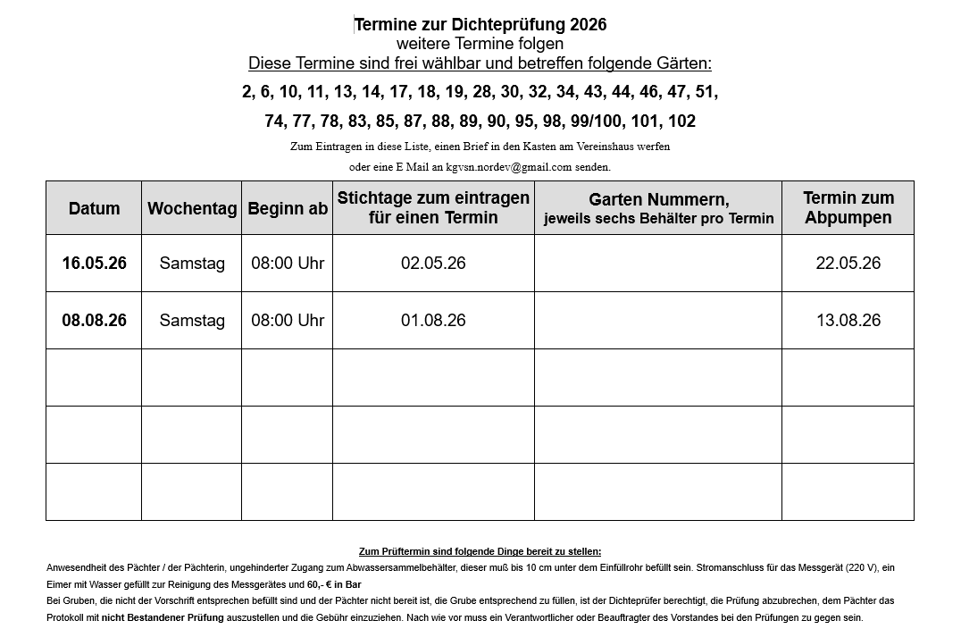 Termine zur Dichtheitsprüfung für Sammelgruben